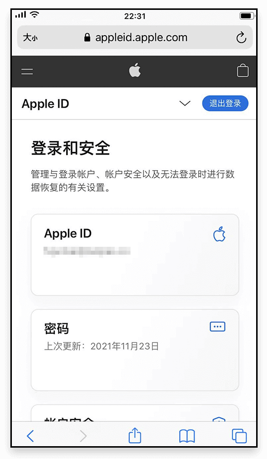 当进入到 <登录和安全> 页面说明您的 <香港 AppleID> 已经注册成功了;